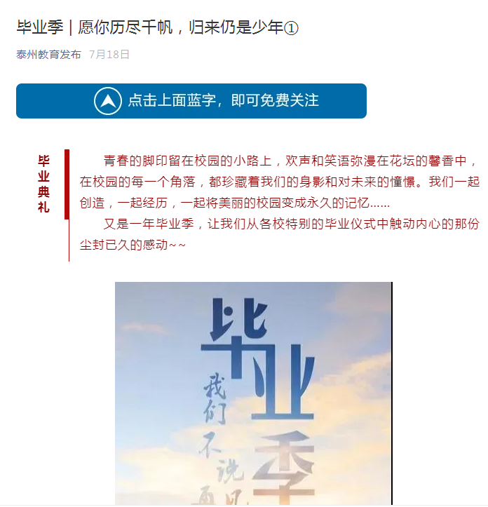《泰州教育发布》毕业季 | 愿你历尽千帆,归来仍是少年①