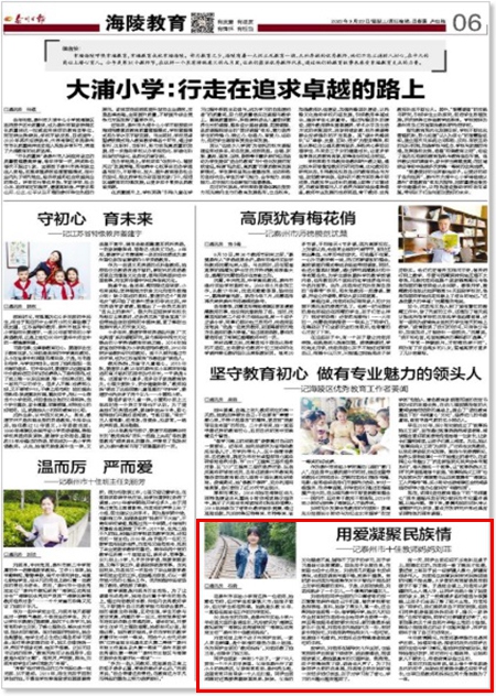 有一天,阿伊古丽闷闷不乐地趴在桌子上,眼睛红红的,刘老师一番了解后才知道,最近班上有孩子说一些新疆人暴力,新疆有很多坏人。刘老师立刻意识到有关民族团结的问题不能含糊,大多数的流言蜚语其实都源于不够了解。于是班会课上,刘老师从新疆的风土人情入手,让阿伊古丽介绍了她美丽的家乡,跳了一段婀娜多姿的维吾尔族舞蹈,让孩子们全面了解了那片土地。刘老师说:“同学们,我们虽然来自不同的民族,但我们同样都是祖国妈妈的孩子,维汉一家亲啊!”自那节课后,同学们对新疆更好奇了,也更加喜欢这个来自那片神秘土地的小姑娘,围在小姑娘身边的孩子也越来越多,阿伊古丽终于有了自己的好朋友。