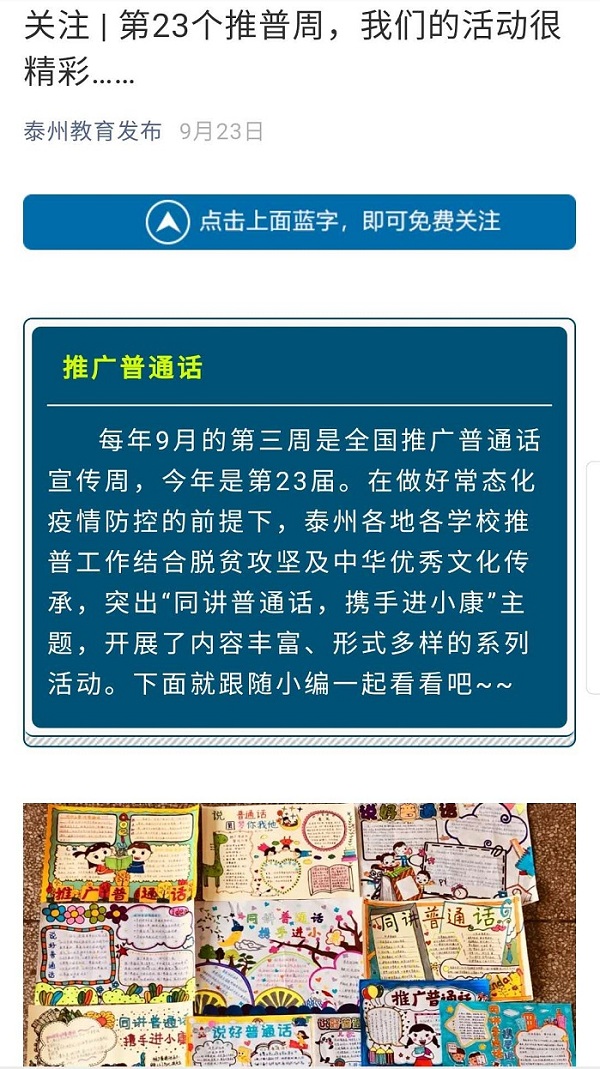《泰州教育发布》关注 | 第23个推普周,我们的活动很精彩……
