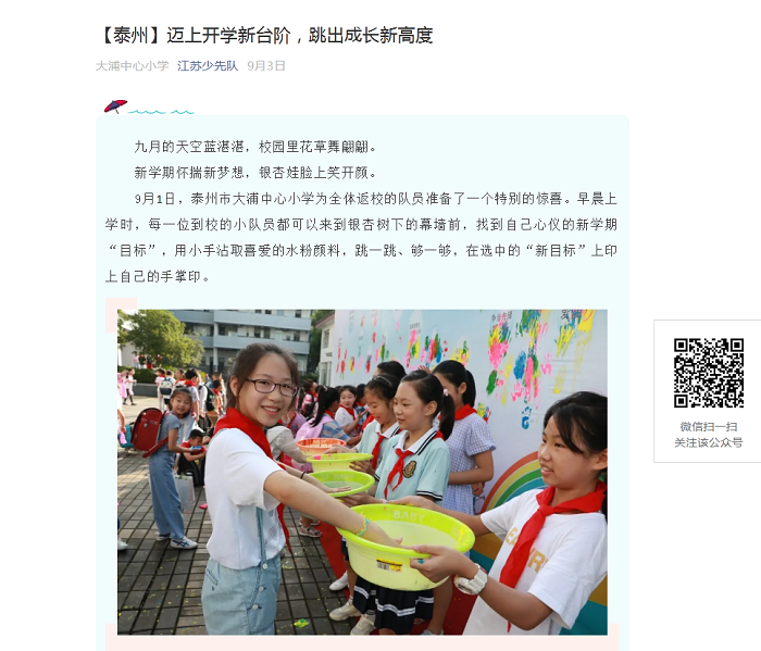 《江苏少先队》【泰州】迈上开学新台阶,跳出成长新高度