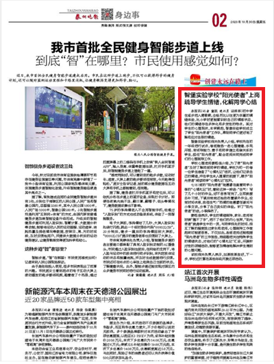 《泰州晚报》智堡实验学校“阳光使者”上岗 疏导学生情绪,化解同学心结