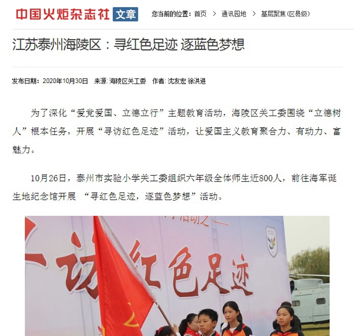 《中国火炬杂志社》江苏泰州海陵区:寻红色足迹 逐蓝色梦想