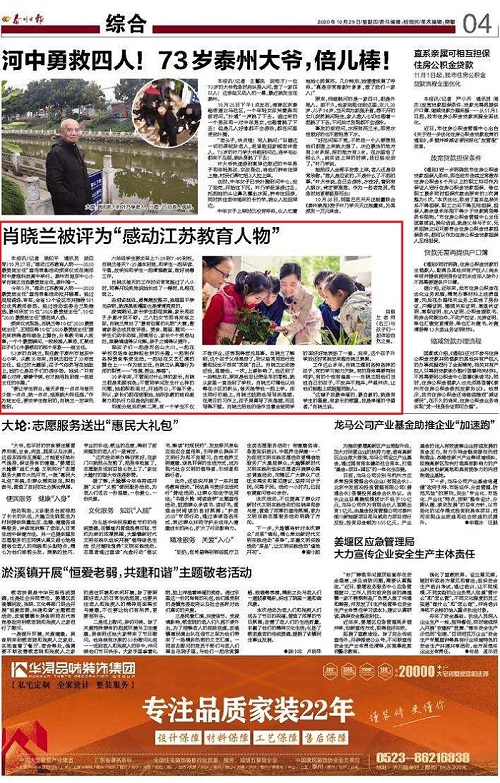 《泰州日报》肖晓兰被评为“感动江苏教育人物”