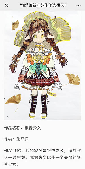 作品介绍:我的家乡是银杏之乡,每到秋天一片金黄,我把家乡比作一个美丽的银杏少女。