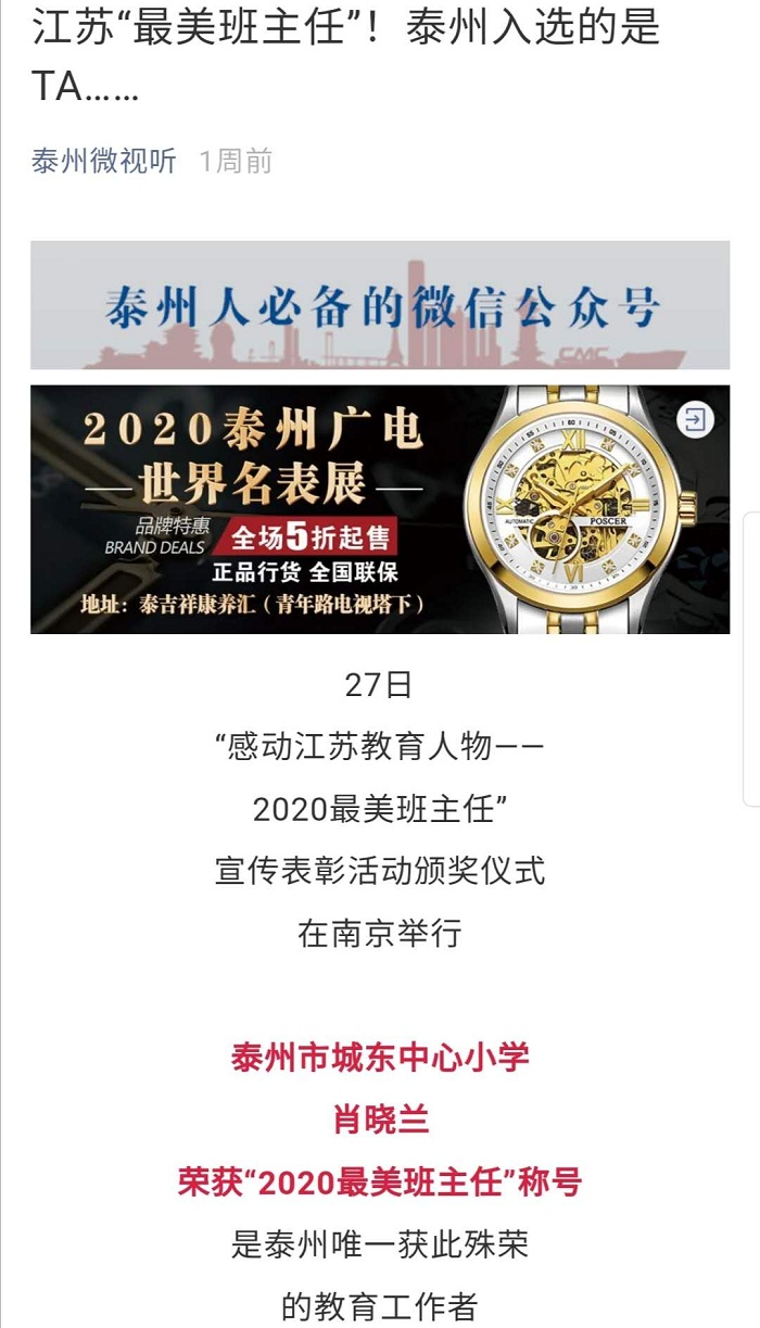 《泰州微视听》江苏“最美班主任”!泰州入选的是TA……