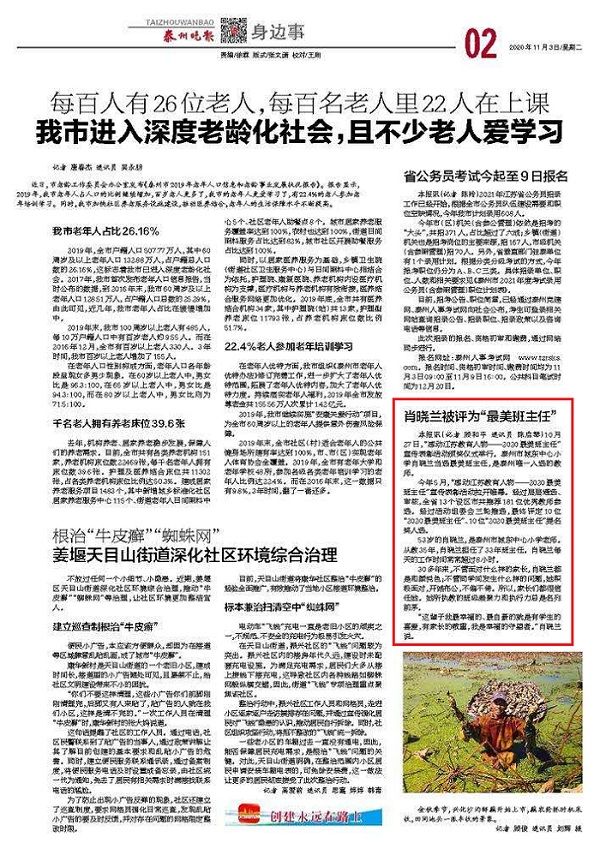 《泰州晚报》肖晓兰被评为“最美班主任”