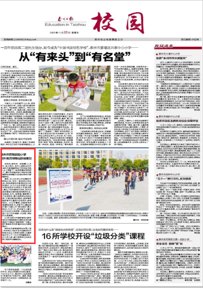 《人民日报》《中国教育报》《新华日报》《江苏教育通讯》《泰州日报》《泰州晚报》“中国共产党新闻网”“中国文明网”等媒体多次报道该校校外教育的做法。