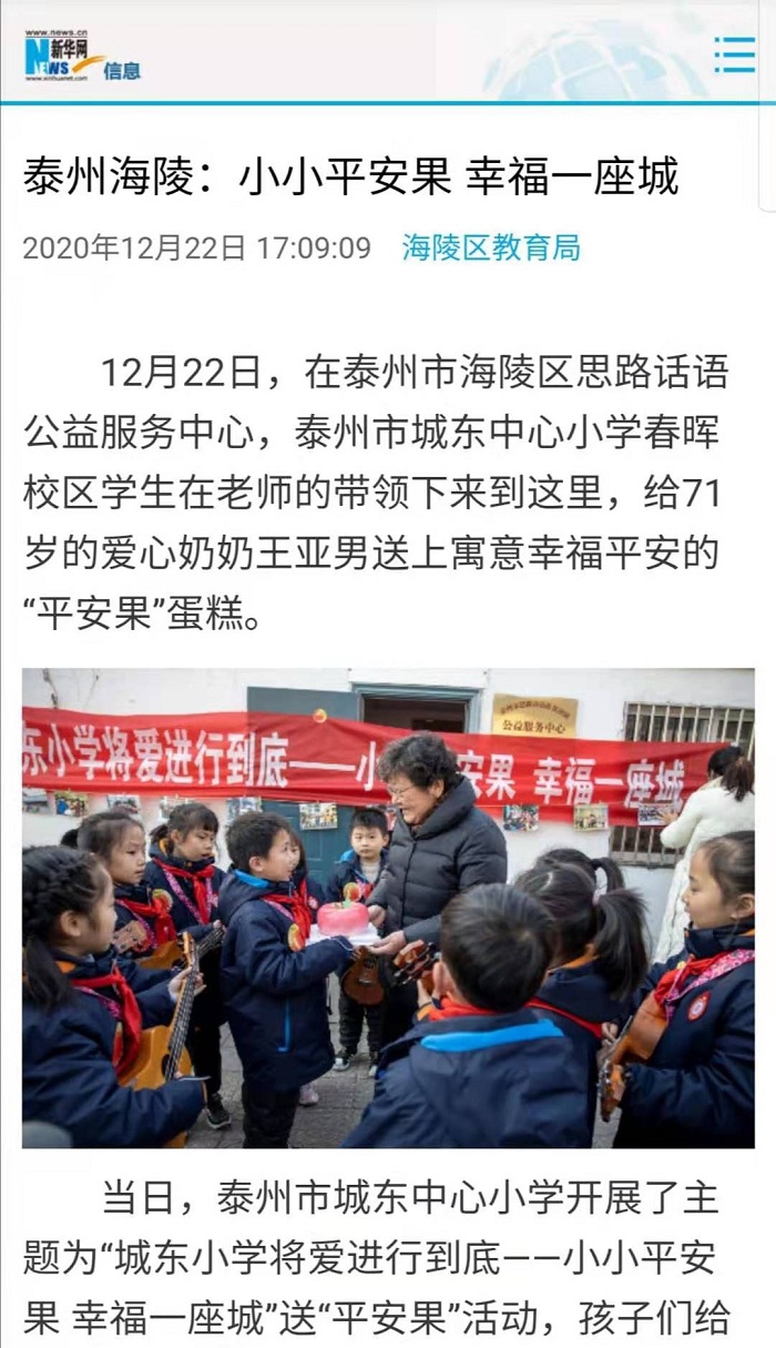 《新华网》泰州海陵:小小平安果 幸福一座城