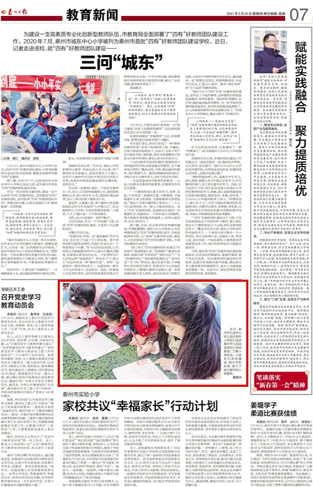 《泰州日报》小朋友参观九龙实验学校小学部 来源:九龙实校 作者:姜慧 发布时间:2021-03-26 浏览次数: 次 【字体:小 大】 近日,泰州市九龙中心幼儿园大班的小朋友们走进泰州市九龙实验学校小学部参观,了解小学生活。小朋友们来到操场,用手中的彩笔,画下了他们眼中的小学模样。 文本刊载于《泰州日报》2021年3月25日07版http://sz.tznews.cn/tzrb/wap/layout/202103/25/node_A01.html 分享到: 【打印正文】 相关内容