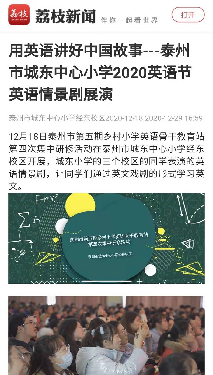 《荔枝新闻》用英语讲好中国故事---泰州市城东中心小学2020英语节英语情景剧展演