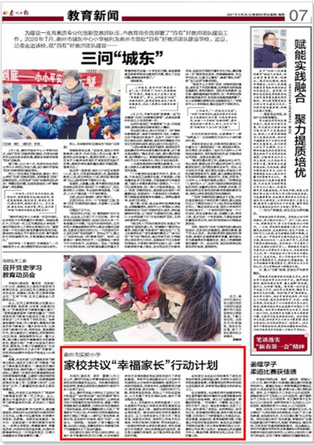 《泰州日报》泰州市实验小学家校共议“幸福家长”行动计划