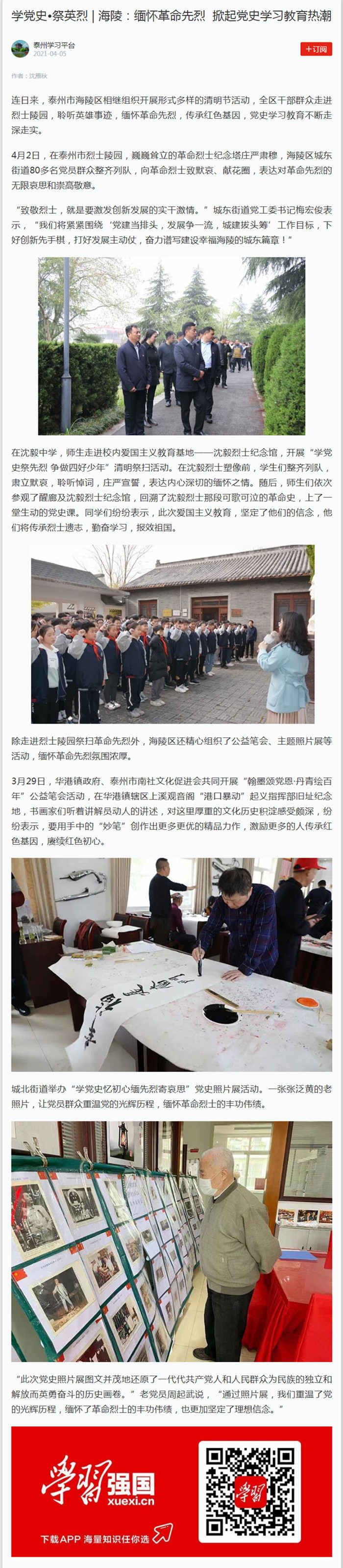《学习强国》学党史•祭英烈 | 海陵:缅怀革命先烈 掀起党史学习教育热潮