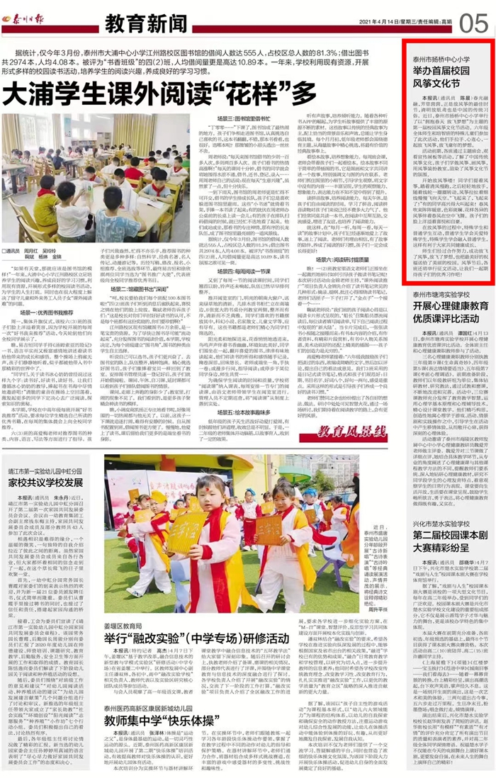 此篇通讯刊登于2021年4月14日《泰州日报》教育新闻版