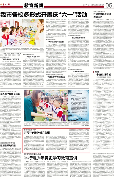 《泰州日报》泰州市实验小学开展“英雄故事”宣讲