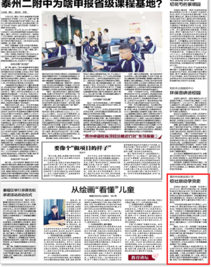 《泰州日报》泰州市苏陈实验小学 校社联动学党史