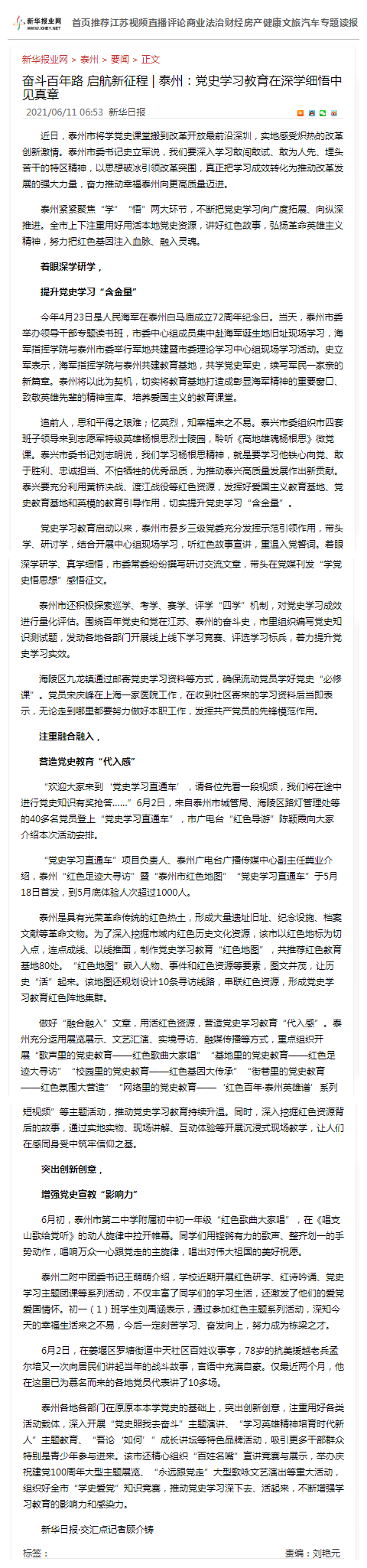 《新华日报》奋斗百年路 启航新征程 泰州:党史学习教育在深学细悟中见真章