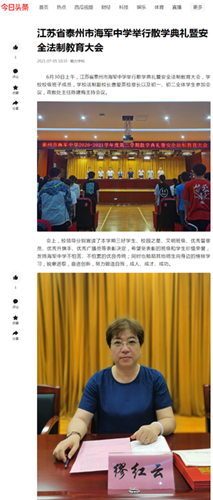 《今日头条》江苏省泰州市海军中学举行散学典礼暨安全法制教育大会