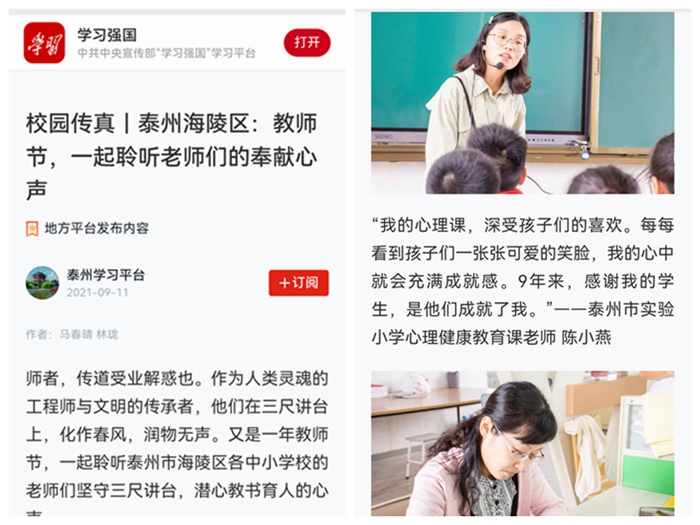 《学习强国》校园传真|泰州海陵区:教师节,一起聆听老师们的奉献心声