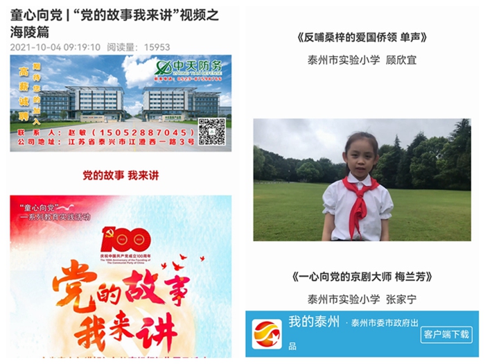 活动开展以来,同学们热情参与,用好用活江苏丰富党史资源,就近就便参观爱国主义教育基地和党史教育基地,学习革命烈士、英雄模范等的先进事迹。通过视频讲故事形式分享心得体悟,传承红色精神、赓续红色基因、筑牢思想根基,争做德智体美劳全面发展的社会主义建设者和接班人。今天,让我们走进海陵区,看看孩子们的风采!