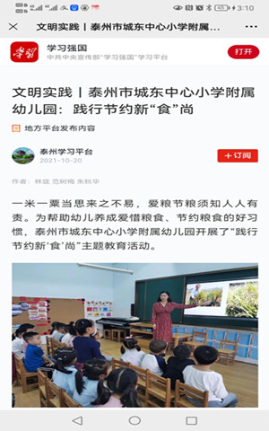《学习强国》文明实践|泰州市城东中心小学附属幼儿园:践行节约新“食”尚