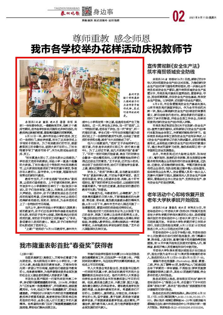 《泰州晚报》尊师重教 感念师恩 我市各学校举办花样活动庆祝教师节