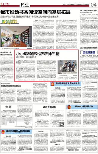 链接:小小轮椅推出浓浓师生情 http://sz.tznews.cn/tzrb/pc/col/202111/04/content_105722.html