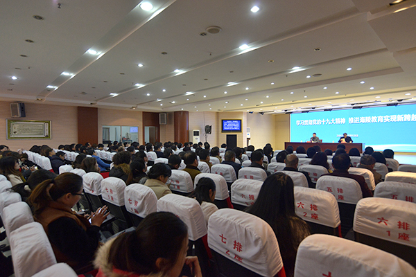 为深入学习宣传贯彻党的十九大精神,更好地用党的十九大精神武装头脑、指导实践,推动党的十九大决策部署在海陵教育落地生根。12月13日下午,区委教育工委举行党的十九大精神集中宣讲活动。区教育局领导班子成员,局机关、教师发展中心中层干部,各中小学、幼儿园,市少年宫校级干部100多人参加宣讲活动。