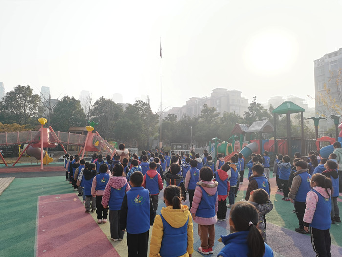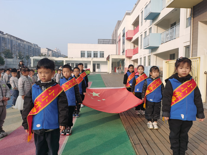 活动在庄严的出旗中正式开始。小小升旗手和护旗手步伐铿锵,目光坚毅,随着庄严的国歌响起,国旗迎着朝阳徐徐升起。全体师幼面向国旗行注目礼、高唱国歌。在庄严肃穆的气氛中,全体师幼集体默哀,用自己的实际行动表达对南京大屠杀遇难同胞的深深哀思。副园长胡艳花向孩子们说道:以前,我们国家因为弱小而被欺负,但孩子们,你们很幸运,出生在和平的时代,中华民族饱受欺凌的时代已经一去不复返,作为一个中国人,我们感到自豪、骄傲!我们要铭记历史,珍爱和平!
