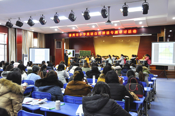 12月15日,泰州市小学英语自然拼读专题研讨活动在海光小学举行。本次活动由泰州市教育局教研室主办,来自全市的200多名小学英语骨干教师参加了活动。
