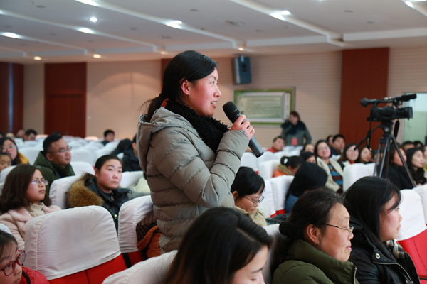 两个半小时的讲座结束后,许多家长依然不愿离去,纷纷向陶雪梅请教自己在家庭教育过程中的种种疑问,陶老师一一做了解答。
