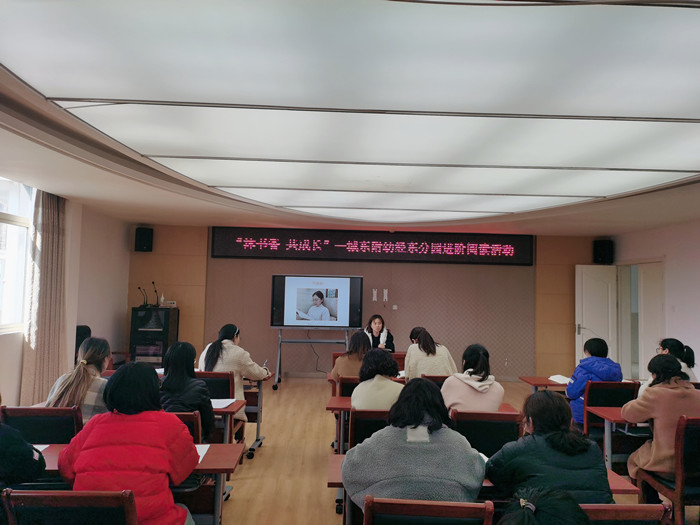 活动开始,胡艳花副园长就开展读书活动的初衷,读书对于教师专业成长的价值进行了阐述,并结合本次阅读书目《儿童发起的游戏和学习——为无限的可能性而规划》,在阅读思路、阅读方法上做了交流分享。