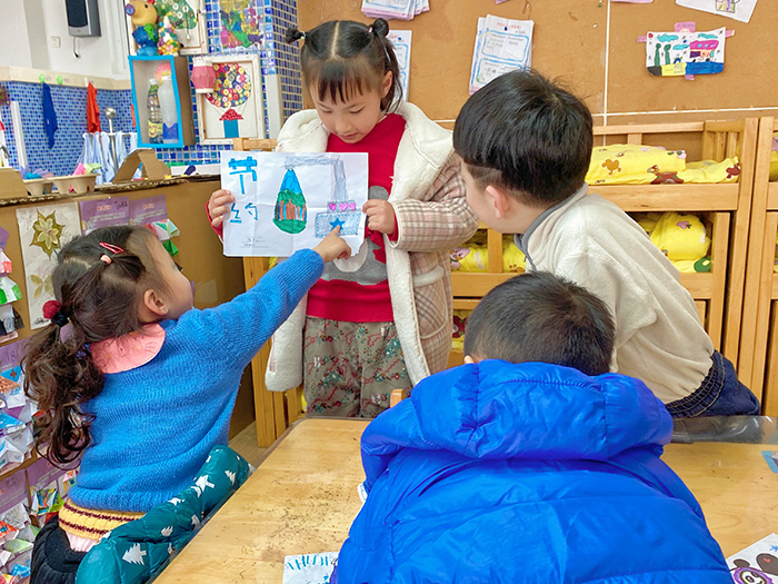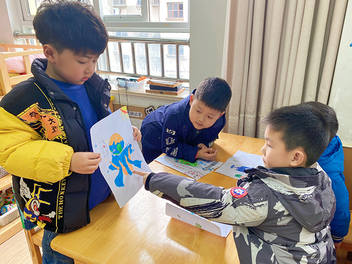 大二班、大三班的孩子们自发提出节水倡议,用手中的画笔绘制出一张张“节水小妙招”宣传海报,有的画出能收集水资源的“神秘机器”,有的画出沙漠绿化成为森林的美好景象……随后,孩子们化身“节水小卫士”走进小中班,给弟弟妹妹们做起了节水科普宣传,以“大带小”的形式让“节约用水”这颗种子根植在萌娃们的心中。