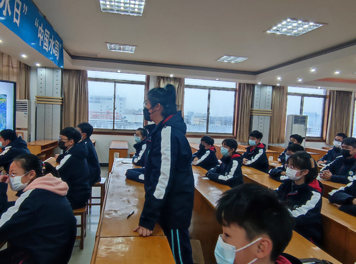 吴委员通过对话的形式向学生普及“世界水日”“中国水周”设立的背景及宗旨,展示了当前世界和中国的水资源分布特点及污染现状;通过详实的图片和视频资料为同学们介绍了中国的南水北调工程、三峡水利枢纽工程以及泰州的引江河水利枢纽工程。