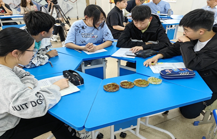 首先,工作室成员田锁勤老师开设题为《香烟浸出液对种子萌芽的影响》数学活动课。课前,田老师带领同学们开展了为期两周的数学实验。她精心设置开放性问题,指导学生设计实验方案,准备实验材料,引导学生融合信息、生物、劳动技术、化学等学科,优化实验过程,收集相关数据。课堂上,同学们通过组内讨论、小组对比、全班汇总等活动,对前期收集到的数据进行数学化地分析,并得出相关结论。整节课注重学生自主发现的过程,引导学生用数学的眼光观察世界、用数学的思维思考世界、用数学的语言表达世界。学生在学习的过程中,主动去获取活动经验,探究解决问题的办法,课堂气氛活跃融洽,效果显著。
