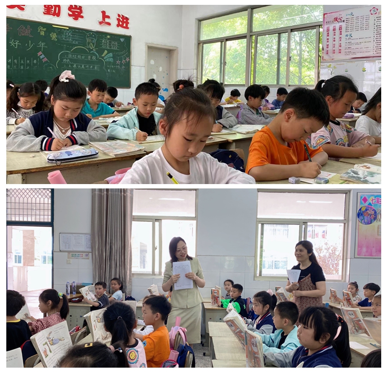 在诵读展示环节中,各校以班级为单位,由评委随机抽取一篇课文,学生们进行集体诵读展示。“剥开粽叶,咬一口粽子,真是又黏又甜。”只见孩子们坐姿整齐,依韵行腔,畅读课文,体会诵读之乐;在书写展示环节中,同样先由评委随机抽取书写内容,“一横一竖写方块字,一撇一捺学做人”,孩子们用心书写每个笔画,力求展示汉字之美。
