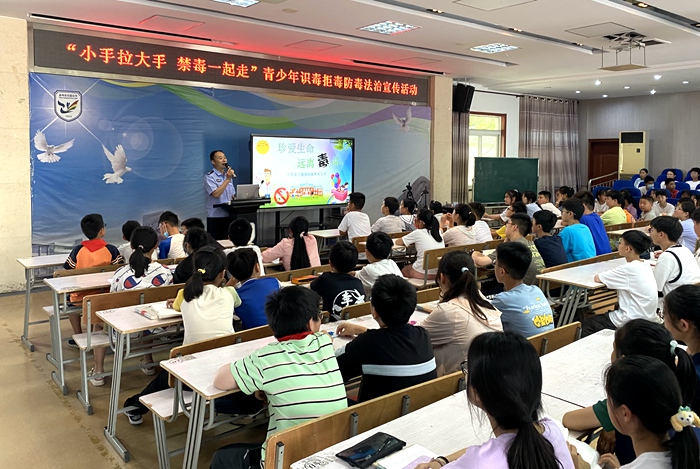 6月16日下午,泰州市实验小学教育集团青年路校区六年级部分学生在学校大教室开展“小手拉大手 禁毒一起走”青少年识毒拒毒防毒法治宣传活动。