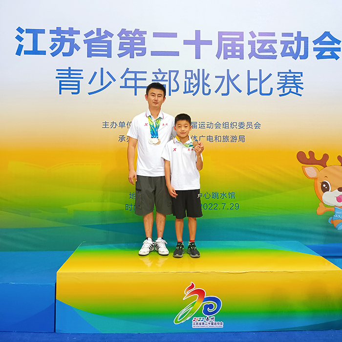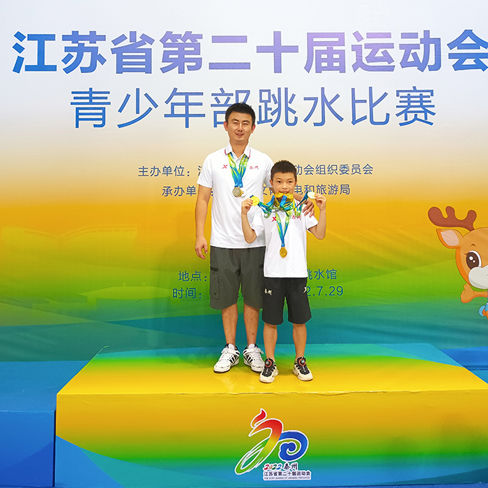 近日,实小附幼教育集团2019届毕业生宗则润、2017届毕业生张佳浩在江苏省第二十届运动会青少年部跳水比赛中表现出色、刷新了纪录,为泰州市代表队赢得“5金1铜”。其中宗则润荣获8岁组男子团体、8岁组男子一米板、8岁组男子五米跳台、8岁组男子个人全能项目、6-8岁组男子双人跳台比赛五个单项冠军,张佳浩荣获男子甲组1米板季军。