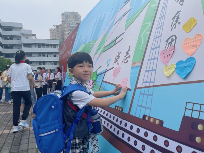 梦想与担当 来源:大浦小学 作者:汤倩云 发布时间:2022-09-01 浏览次数: 次 【字体:小 大】 9月1日上午,大浦教育集团本部“梦想与担当”主题入学仪式如期举行。新学期我们紧跟时代脚步,致力于培养“有理想、有本领、有担当”的大浦银杏娃。 一年级新同学在哥哥姐姐的帮助下将自己“梦想爱心卡”贴在“伍成号”上,从小心怀理想、乘风破浪、扬帆起航。二至六年级的同学则在活动主题墙上,选择自己的想要达成的小目标,摁下五彩指印,许下庄严承诺,为新学期的自己加油、助力! 新学期,新成长,银杏娃们大手牵小手,筑梦向未来! 分享到: 【打印正文】 相关内容