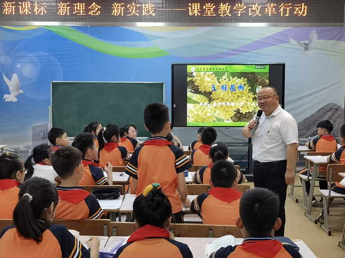 泰州市实验小学校长丁正后作题为《桂花雨》的示范课。他以思乡诗句导入,由诗至情,层层深入。整节课以“情”为主线,教者有意培养学生的语感、想象力、提取信息的能力,适时挖掘教材中的训练点,引领学生放飞想象的翅膀,对学生进行恰到好处的语言训练。