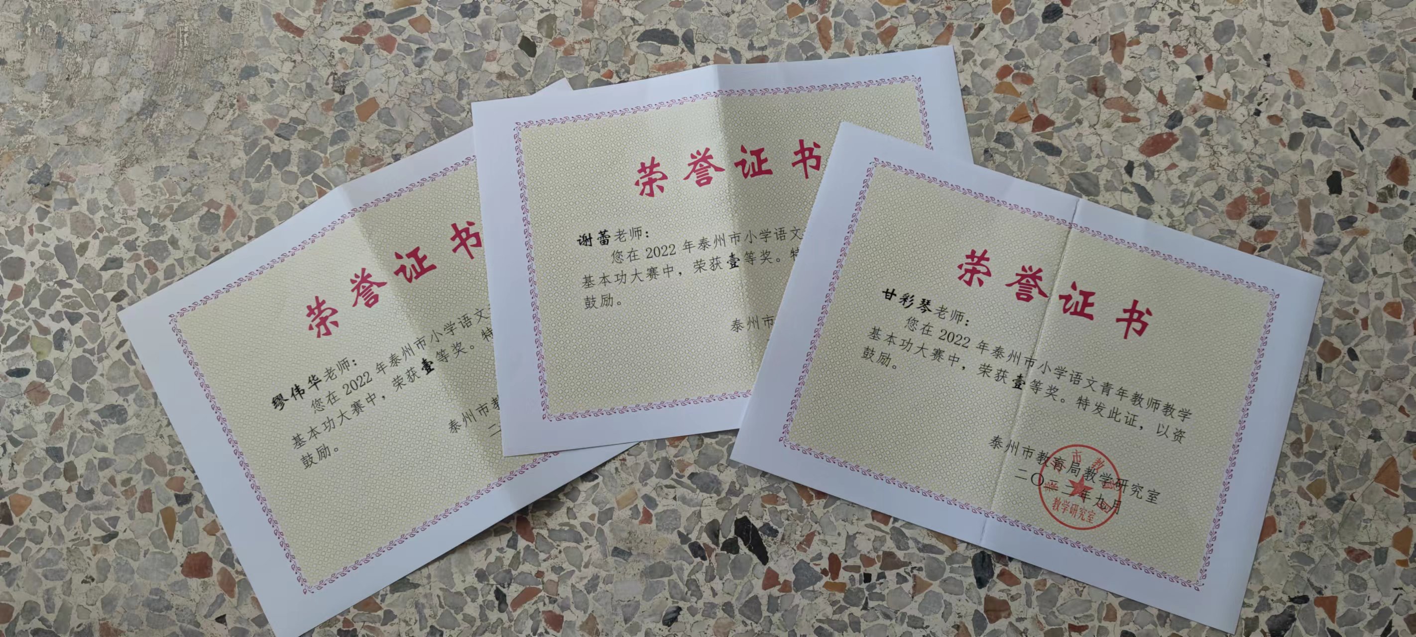 三位教师经过层层选拔,参加了课堂教学、粉笔字、专业素养、即兴演讲、课文朗读、编讲故事、才艺展示共七项比赛。本次比赛全市共计21位老师参赛,七项比赛权重不同,按项目表现折算得分,累加后计算总分排名得出奖项。三位老师凭借稳定的发挥,扎实的素养,在全市脱颖而出。其中缪伟华、谢蕾两位老师将代表泰州市参加江苏省小学语文青年教师基本功大赛。