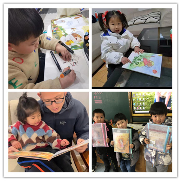 同时各班老师,针对班级幼儿的兴趣与特点,制定了“花式”阅读计划,如阅读过程中用绘画的方式记录故事情节、创编故事、自主选择喜欢的绘本进行阅读、和爸爸妈妈一起阅读、读书漂流等。