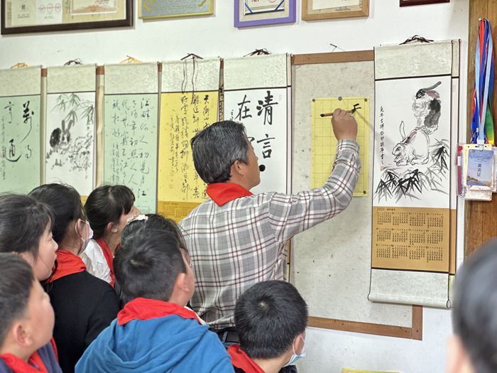 2023年是全面贯彻落实党的二十大精神的开局之年。为进一步学习贯彻党的二十大精神,以先进模范人物为榜样,从小学先锋、长大做先锋。为发扬我国民间传统文化,丰富学生的课余文化生活。3月10日下午,大浦中心小学德育处、少工委、关工委联合大浦社区一同开展了“寻身边榜样,汲非凡力量——红领巾寻访身边榜样”的实践活动,走近非遗传承人赵军安同志。