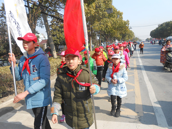 “我们是共产主义接班人,继承革命先辈的光荣传统……”12月21日下午,苏陈实验小学的50多名留守儿童在老师的带领下,排着队唱着歌前往泰州市润华物资有限公司参观。