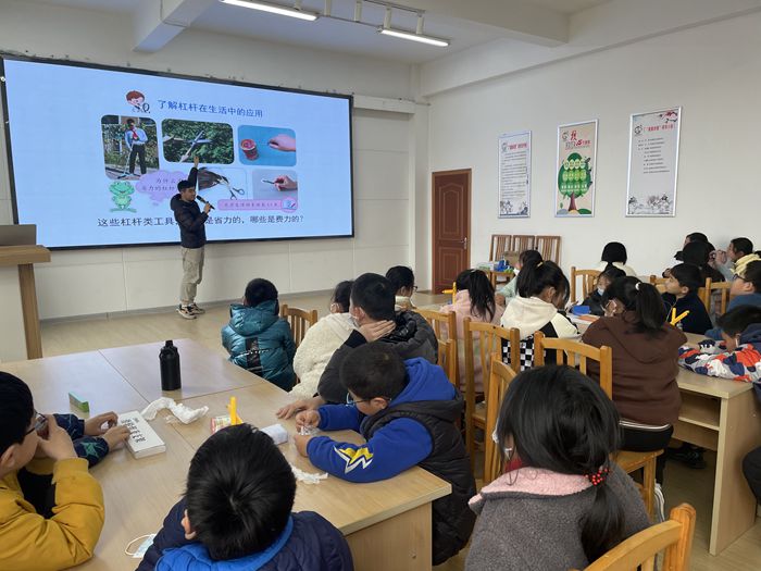 大浦小学青年志愿者陈辉老师给孩子们带来一节趣味性十足的科学课程《杠杆的秘密》,课堂上陈老师从阿基米德的一句名言入手:“给我一个支点我就能撬动整个地球!”适时的引入杠杆概念,让同学们通过实验操作的方式认识杠杆省力的秘密,了解杠杆在生活中的具体应用。最后带领同学们头脑风暴,从科学的角度辨析撬动地球的可行性。