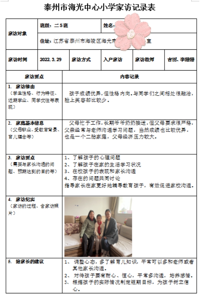 从“心”出发 做有温度的教育——海光小学教师全员家访活动