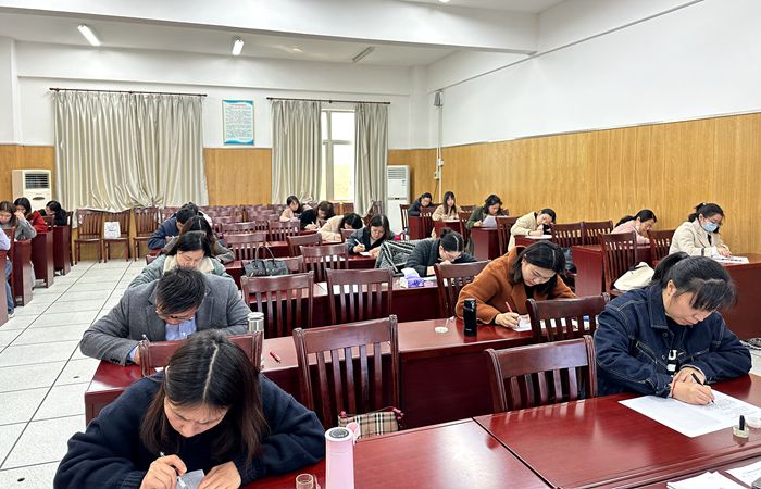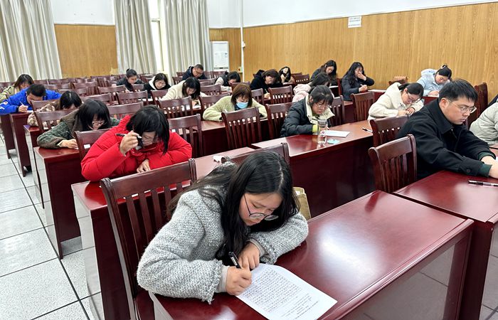 本次基本功大赛分为专业素养比赛和通用技能比赛两部分。3月27日,初中语文教师专业素养测试以笔试形式进行,全区40周岁以下61位青年教师全部参加了比赛。语文素养测试较全面地考察了选手们对学科知识的理解、积淀、融会及运用能力。参赛选手高度重视,准备充分,展现了自身的学科综合素养,经过评选, 14名选手入围通用技能比赛。