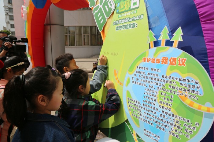 4月22日上午,在第54个世界地球日来临之际,泰州市少年宫开展了“我给地球降降温”——第50期快乐实践大本营活动,全市近500名少年儿童参与了其中。