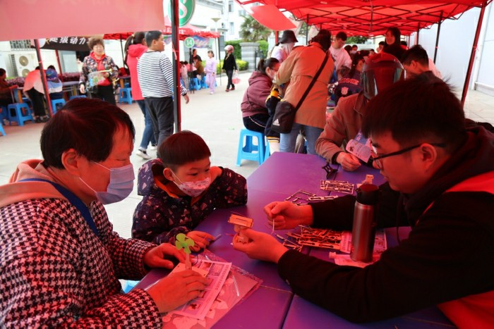 “手摇发电机”项目的帐篷里,志愿者教师正在带领孩子们固定底座支架、连接导线、磨合齿轮,安装灯泡……孩子们在教师的指导下,经过不断地思考与探索,一台台简易的手摇发电机呈现眼前,孩子们轻轻摇动着手柄,小灯泡逐渐亮了起来,现场顿时响起一片欢呼声。“为什么摇动手柄时,灯泡会发光?”通过提问的方式,教师志愿者给孩子们讲述了机械能转化成电能的原理。王继博小朋友高兴地说:“这样的科技小制作非常有趣,让我体会到发电的不易,以后在生活中我一定要做到节约用电,保护环境。”