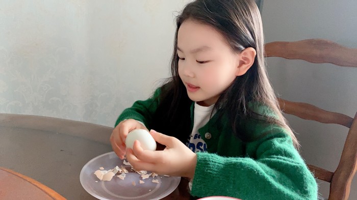 立夏蛋趣。民间立夏有吃蛋、挂蛋和斗蛋的习俗。孩子们用画笔给自己的 蛋宝宝“穿”上漂亮的衣服,一张张笑脸、一朵朵小花跃然蛋上,别出心裁,绘出了即将到来的美丽盛夏,并进行挂蛋、斗蛋的游戏,体验民俗游戏的快乐。