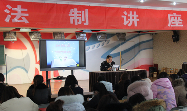 市幼儿园开展法制专题讲座 来源:泰州市幼儿园 作者:李倩 秦丽梅 发布时间:2017-12-26 浏览次数: 次 【字体:小 大】 12月25日,市幼儿园开展了法制教育专题培训,片区民警陆任贤为全园教职工上了一堂简单明了、通俗易懂的法制课。陆警官用平实的语言讲解了校园安全知识,他结合在校园里发生的恶性安全事件,指导教师积极应对幼儿意外伤害事故,运用法律武器进行自我保护。 分享到: 【打印正文】 相关内容